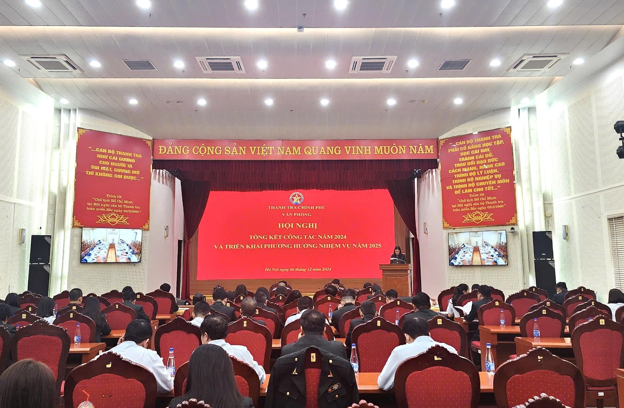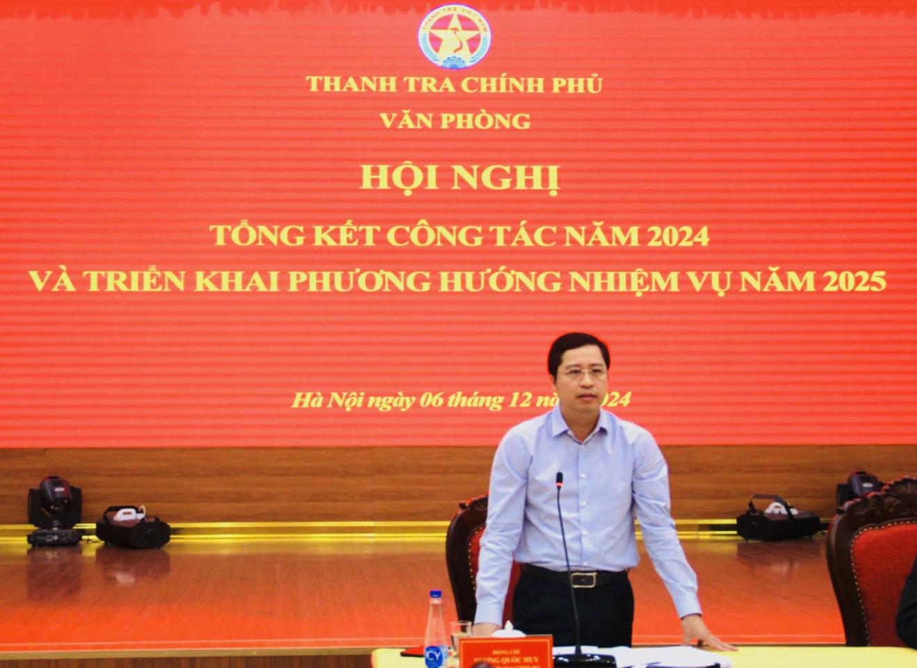Sáng ngày 6/12, tại trụ sở cơ quan Thanh tra Chính phủ (TTCP), Văn phòng TTCP tổ chức Hội nghị tổng kết công tác năm 2024 và triển khai nhiệm vụ công tác năm 2025. Phó Tổng TTCP Dương Quốc Huy dự và phát biểu chỉ đạo tại hội nghị.