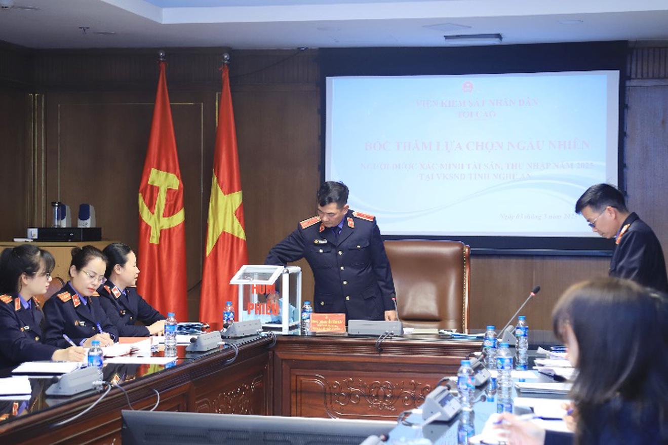 Phó Chánh Thanh tra Viện KSND Tối cao yêu cầu tổ bốc thăm thực hiện việc bốc thăm theo quy định; lãnh đạo Viện KSND tỉnh Hưng Yên, Viện KSND tỉnh Nghệ An phối hợp, chỉ đạo các đồng chí đã được bốc thăm ngẫu nhiên tại đơn vị kịp thời cung cấp thông tin, tài liệu có liên quan để phục vụ việc xác minh tài sản, thu nhập năm 2025.